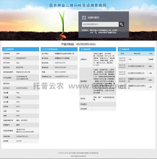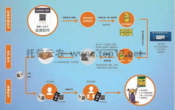 此環(huán)節(jié)中,所有生產及流通過程信息已同步到托普農作物種子二維碼標簽追溯系統(tǒng)。消費者、執(zhí)法者、經營者均可通過手機掃描二維碼得知種子生產流通過程。