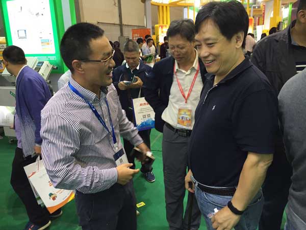 全國農(nóng)業(yè)技術(shù)推廣服務(wù)中心謝建華副主任,首席專家高祥照博士一行先后蒞臨托普云農(nóng)展區(qū),觀摩了公司展出的水肥一體化智能監(jiān)測系統(tǒng)和土壤墑情監(jiān)控預(yù)警平臺與設(shè)備,并與托普云農(nóng)董事長陳渝陽親切交流。