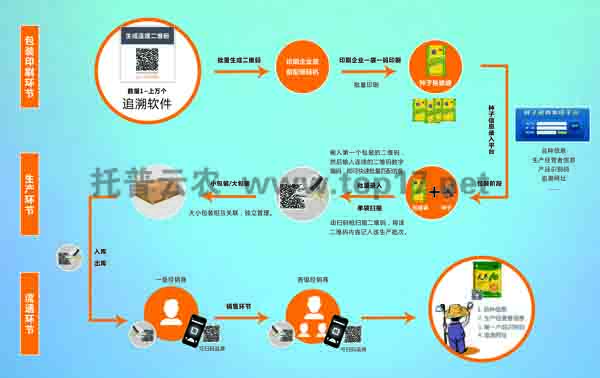 為了配合種子標簽,很多企業(yè)也做出力所能及的工作。比如,浙江托普云農(nóng)科技股份有限公司根據(jù)9月18日農(nóng)業(yè)部辦公廳印發(fā)的《農(nóng)作物種子標簽二維碼編碼規(guī)則》要求,推出的農(nóng)作物種子二維碼標簽追溯系統(tǒng)。系統(tǒng)分為:包裝印刷環(huán)節(jié)、生產(chǎn)環(huán)節(jié)、流通環(huán)節(jié)、追溯環(huán)節(jié)等四個環(huán)節(jié)。操作靈活方便,可自動生產(chǎn)唯一性二維碼,品種和批次獨立管理,又相互關(guān)聯(lián)。消費者,執(zhí)法者,經(jīng)營者可通過手機二維碼獲得種子的品種信息、生產(chǎn)經(jīng)營者信息、品識別碼、追溯網(wǎng)址等內(nèi)容。