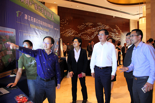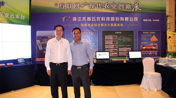 浙江省委副書記、代省長車俊一行也蒞臨托普云農(nóng)展區(qū),公司董事長陳渝陽、常務(wù)副總朱旭華向車省長介紹講解了公司物聯(lián)網(wǎng)項目的實施應(yīng)用情況以及現(xiàn)階段在現(xiàn)代農(nóng)業(yè)領(lǐng)域取得的成績,得到了車省長的肯定與贊許。