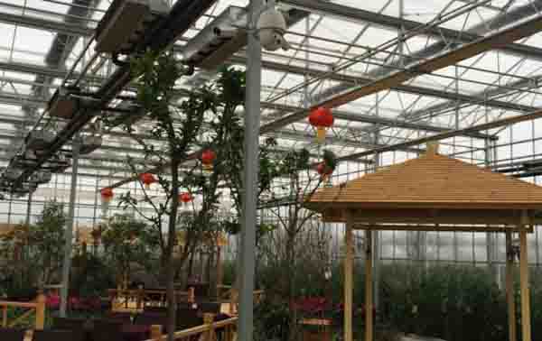 館內(nèi)配有先進(jìn)的控溫、通風(fēng)、遮陽系統(tǒng),確保陽光、水份、營養(yǎng)的有效供給。運(yùn)用現(xiàn)代景觀造景手法,將現(xiàn)代農(nóng)業(yè)科技展示、熱帶植物觀賞、蔬菜瓜果采摘、生態(tài)餐飲服務(wù)高度集成,體現(xiàn)了園藝、科技與生活的完美結(jié)合。走進(jìn)展館給人以新奇甚至是驚奇的感覺,讓人們在休閑娛樂的同時,既開闊眼界又增長了知識。同時展館也是以熱帶植物為特色的主題餐館,市民可在鮮花叢中愉快的享受生態(tài)美食。
