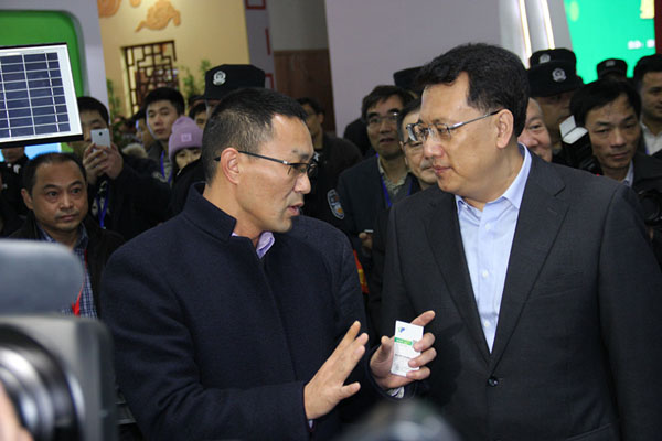 本屆展會(huì)“互聯(lián)網(wǎng)+”成托普云農(nóng)展區(qū)亮點(diǎn),吸引了省領(lǐng)導(dǎo)的目光及浙江衛(wèi)視的關(guān)注。省委副書(shū)記袁家軍、省人大常委會(huì)副主任程渭山、副省長(zhǎng)孫景淼等領(lǐng)導(dǎo)在工作人員的陪同下參觀了托普云農(nóng)展區(qū)。托普云農(nóng)董事長(zhǎng)陳渝陽(yáng)向袁家軍副書(shū)記一行介紹了公司在物聯(lián)網(wǎng)方面取得的階段性進(jìn)展和研發(fā)成果,結(jié)合現(xiàn)場(chǎng)展示的植保信息化系統(tǒng),向袁家軍副書(shū)記一行演示了智能農(nóng)業(yè)儀器是如何“+”互聯(lián)網(wǎng)技術(shù)在全天候無(wú)人值守的情況下實(shí)現(xiàn)“四情”監(jiān)測(cè)的。直接展現(xiàn)了互聯(lián)網(wǎng)產(chǎn)業(yè)與農(nóng)業(yè)產(chǎn)業(yè)融合發(fā)展促進(jìn)傳統(tǒng)農(nóng)業(yè)轉(zhuǎn)型升級(jí)的發(fā)展現(xiàn)狀。