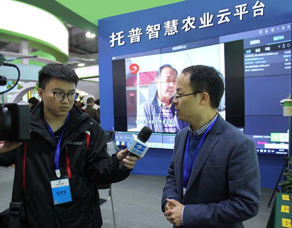 這一番“互聯(lián)網(wǎng)+農(nóng)業(yè)”的介紹也獲得了浙江衛(wèi)視的關(guān)注。記者來(lái)到托普云農(nóng)展位,公司副總朱旭華向記者介紹了公司獲得的科研成就及展出的智能化軟硬件系統(tǒng)。主要有:托普云農(nóng)農(nóng)業(yè)“四情”監(jiān)控系統(tǒng)、設(shè)施農(nóng)業(yè)監(jiān)控系統(tǒng)、水肥一體化監(jiān)控系統(tǒng)、智慧農(nóng)業(yè)云平臺(tái)等農(nóng)業(yè)物聯(lián)網(wǎng)系統(tǒng)、平臺(tái)及土壤墑情監(jiān)控系統(tǒng)硬件、農(nóng)藥殘留速測(cè)儀、相關(guān)智能硬件設(shè)備(如遠(yuǎn)程傳輸智能蟲(chóng)情測(cè)報(bào)燈、溫室通、大田六合一無(wú)線傳感器、植物本體傳感器)。