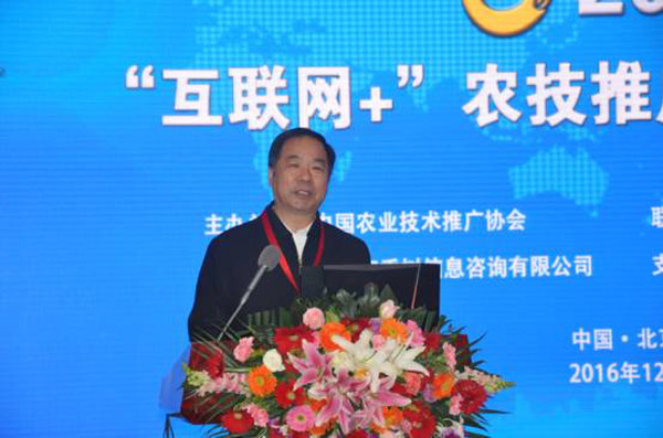 全國農(nóng)業(yè)技術(shù)推廣服務(wù)中心種業(yè)信息與技術(shù)處處長王玉璽作關(guān)于“互聯(lián)網(wǎng)+農(nóng)技推廣如何“落地開花”的思考與探索”的報告