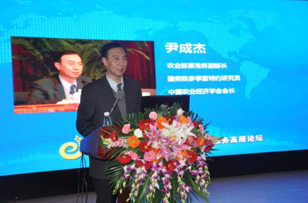 農(nóng)業(yè)部原常務(wù)副部長、國務(wù)院參事室特約研究員、中國農(nóng)業(yè)經(jīng)濟學會會長尹成杰作大會主旨報告