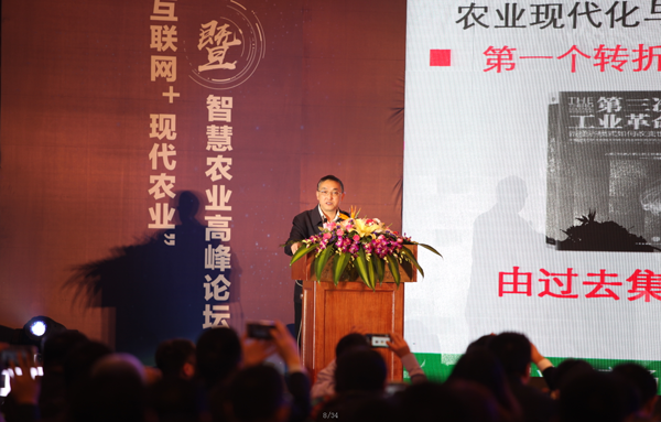 大家早上好。今天的高峰論壇很有創(chuàng)新,大家發(fā)現(xiàn)了沒有,互聯(lián)網(wǎng)+現(xiàn)代農(nóng)業(yè),立足當(dāng)下,后邊還跟著智慧農(nóng)業(yè),是發(fā)展目標(biāo),跟中央文件,直接打在了現(xiàn)代農(nóng)業(yè)后面,+放在了上面很有創(chuàng)新。