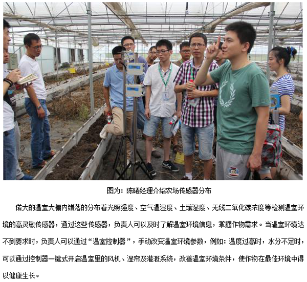 喬司農(nóng)場(chǎng)是浙江省首家集規(guī)模種植、科研生產(chǎn)、網(wǎng)絡(luò)銷(xiāo)售、宅配服務(wù)為一體的國(guó)家級(jí)農(nóng)業(yè)綜合開(kāi)發(fā)綠色蔬菜生產(chǎn)基地。2014年4月中旬,托普物聯(lián)網(wǎng)系統(tǒng)在喬司農(nóng)場(chǎng)成功搭建運(yùn)行。 隨后的8月2日,銷(xiāo)售部全體員工在時(shí)任營(yíng)銷(xiāo)經(jīng)理陳曦的帶領(lǐng)下前往喬司農(nóng)場(chǎng),觀看農(nóng)場(chǎng)內(nèi)的物聯(lián)網(wǎng)系統(tǒng)運(yùn)行情況。