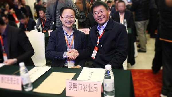 托普云農(nóng)朱旭華代表公司與昆明市農(nóng)業(yè)局進行簽約