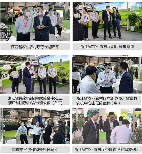 浙江省省委常委、省軍區(qū)司令員馮文平(左二);浙江省農(nóng)業(yè)農(nóng)村廳副廳長(zhǎng)唐冬壽(左一);浙江省農(nóng)業(yè)農(nóng)村廳鄉(xiāng)村產(chǎn)業(yè)與市場(chǎng)信息處副處長(zhǎng)程兵(右二)參觀托普云農(nóng)展位