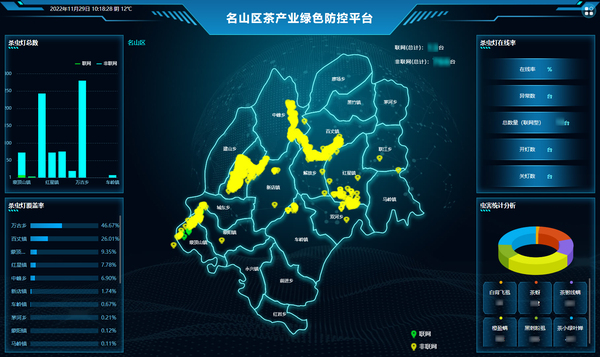 雅安名山位于成都平原西南邊緣,擁有茶園面積35萬畝左右,揚(yáng)子江心水,蒙山頂上茶,千百年來被廣為傳頌。為進(jìn)一步提質(zhì)增效,打造全國(guó)高品質(zhì)茶葉基地,打響蒙頂山茶品牌,雅安名山區(qū)目前已在核心區(qū)域布設(shè)天敵友好型茶園殺蟲燈900余臺(tái),逐步完善茶園綠色防控體系的建設(shè),通過特制的LED誘蟲光源,針對(duì)茶園主要害蟲精準(zhǔn)防控,大大減少茶園化學(xué)農(nóng)藥的施用次數(shù)和施用量,保障茶葉品質(zhì)及生態(tài)環(huán)境安全,實(shí)現(xiàn)綠色高質(zhì)量發(fā)展。