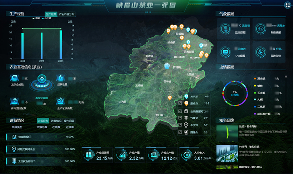 峨眉山茶始于西周,發(fā)乎于秦漢,盛名唐宋。近年來,峨眉山市國(guó)家農(nóng)村產(chǎn)業(yè)融合發(fā)展示范園堅(jiān)持以茶葉為主導(dǎo)產(chǎn)業(yè),建設(shè)優(yōu)質(zhì)茶業(yè)基地,形成“園區(qū)+產(chǎn)業(yè)+旅游+文化”的茶產(chǎn)業(yè)模式。托普云農(nóng)以峨眉山茶產(chǎn)業(yè)基地為依托,布設(shè)蟲情、苗情、墑情、災(zāi)情監(jiān)測(cè)智能裝備,打造茶產(chǎn)業(yè)數(shù)字化平臺(tái),涵蓋茶產(chǎn)業(yè)一張圖、生產(chǎn)綜合管理、市場(chǎng)行情監(jiān)測(cè)等內(nèi)容,打通從“茶園”到“茶杯”的全茶產(chǎn)業(yè)鏈,帶動(dòng)農(nóng)戶走出一條可復(fù)制的增收之路。