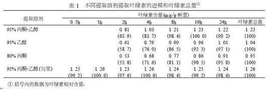 上圖是不同的葉綠素提取液在提取葉綠素時(shí)的進(jìn)度,可以看出,差別還是挺大的。大家可自己比較下。從圖中我們可以發(fā)現(xiàn),95% 丙酮2乙醇(勻漿)的提取效果最佳,因此,我們在進(jìn)行葉綠素含量測定的時(shí)候,可以考慮運(yùn)用95% 丙酮2乙醇(勻漿)作為提取液。