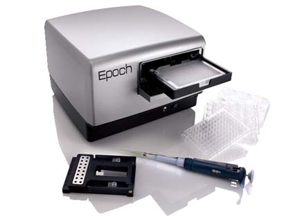 BioTek 最新推出的EpochTM 超微量微孔板分光光度計(jì)應(yīng)用廣泛,從微升級(jí)的核酸、蛋白定量到基于細(xì)胞研究的微孔板樣品分析,BioCell檢測(cè)和標(biāo)準(zhǔn)比色杯檢測(cè),都可以輕松快速的完成。Epoch微孔板分光光度計(jì)的出現(xiàn)填補(bǔ)了微孔板檢測(cè)儀設(shè)計(jì)的一個(gè)空白,是一款基于單色器的微孔板吸收光檢測(cè)系統(tǒng),設(shè)計(jì)精致小巧耐用,與基于濾光片的吸收光檢測(cè)系統(tǒng)相比,Epoch可以提供更為優(yōu)異的紫外/可見吸收光檢測(cè)。同時(shí)配合Take3TM 超微量多體積檢測(cè)板,可以覆蓋分子生物研究實(shí)驗(yàn)室的各類常規(guī)檢測(cè)分析。