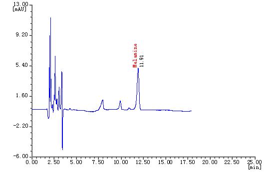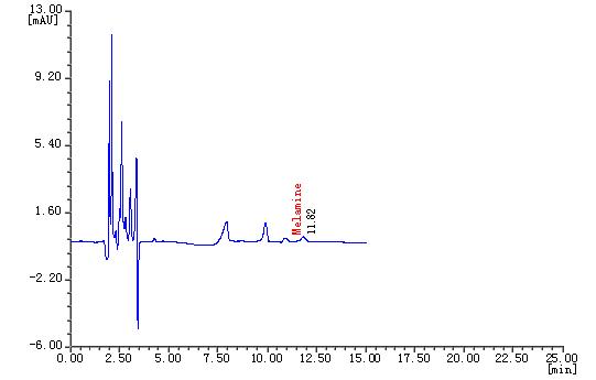 三聚氰胺(Melamine)是一種重要的三嗪類含氮雜環(huán)有機(jī)化工原料,主要用于生產(chǎn)三聚氰胺-甲醛樹(shù)脂,廣泛用于木材加工、塑料、涂料、造紙、紡織、皮革等行業(yè),為白色晶體。三鹿奶粉事件引發(fā)了對(duì)三聚氰胺檢測(cè)的廣泛關(guān)注,國(guó)家質(zhì)量監(jiān)督檢驗(yàn)檢疫總局和國(guó)家標(biāo)準(zhǔn)化管理委員會(huì)相繼發(fā)布了《原料乳與乳制品中三聚氰胺檢測(cè)方法》(GB/T22388-2008)和《原料乳中三聚氰胺快速檢測(cè) 液相色譜法》(GB/T22400-2008)的國(guó)家標(biāo)準(zhǔn)。本文參考了以上標(biāo)準(zhǔn)并進(jìn)行配制條件優(yōu)化,建立了液相色譜檢測(cè)法,前處理簡(jiǎn)單,檢測(cè)限、精密度、重現(xiàn)性以及回收率均符合國(guó)家標(biāo)準(zhǔn)。