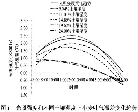 不同土壤濕度下小麥葉氣溫差對光照強度的反應及對蒸騰的影響