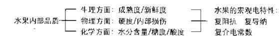 水果內(nèi)部品質(zhì)與宏觀電特性的關(guān)系如下:水果電特性的檢測(cè)方法有切片、突刺、接觸和非接觸等方法,前二種屬于有損檢測(cè),后二種將被測(cè)水果直接放入平板電極間測(cè)定其電特性參數(shù),屬于無損檢測(cè)。