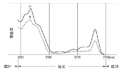 從圖中可以看出,葉綠素在藍(lán)色區(qū)域(400—500nm)和紅色區(qū)域(600—700nm)范圍內(nèi)吸收達(dá)到了峰值,但在近紅外區(qū)域卻沒有吸收。也就是說(shuō),不同波長(zhǎng)的光線,葉綠素的吸收量是不同的。這也正好符合了我們的要求,通過(guò)不同的吸收量,來(lái)測(cè)出spad值。