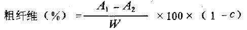 樣品相繼與熱的稀酸、稀堿共煮,并分別經(jīng)過濾分離、洗滌殘留物等操作,再進(jìn)行干燥、灰化。酸可將糖、淀粉、果膠質(zhì)和部分半纖維素水解而除去。堿能溶解蛋白質(zhì)、部分半纖維素、木質(zhì)素和皂化脂肪酸而將其除去。再用乙醇和乙醚處理。所得的殘?jiān)稍锖鬁p去灰分重即為粗纖維含量。
