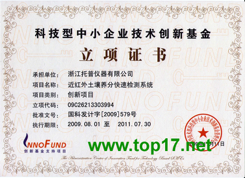 圖 浙江托普儀器有限公司獲科技型中小企業(yè)技術(shù)創(chuàng)新基金
