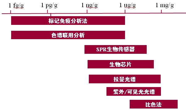 快速篩查技術(shù)從大方面分,主要分為生物分析技術(shù)和化學(xué)分析技術(shù)。其中生物分析技術(shù)又可以分為免疫學(xué)技術(shù)、生物芯片技術(shù)和生物傳感器技術(shù);化學(xué)分析技術(shù)又可以分為化學(xué)檢測(cè)試劑盒、質(zhì)譜、光譜檢測(cè)技術(shù)和電化學(xué)傳感器。