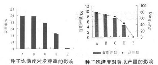一級的黃瓜種子千粒重必須要有30g以上,這次的試驗就根據(jù)種子飽滿度不同將其分為5級:A、千粒質(zhì)量30g以上;B、千粒質(zhì)量25-30g;C、千粒質(zhì)量22-25g;D、千粒質(zhì)量18-22g;E、千粒質(zhì)量18g以下。進行試驗,種子發(fā)芽試驗最好是使用種子發(fā)芽箱來進行操作。結(jié)果如下圖: