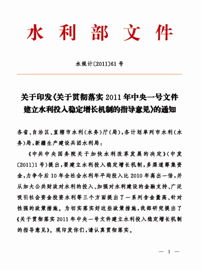 2011年中央一號(hào)文件建立水利投入穩(wěn)定增長(zhǎng)機(jī)制主要內(nèi)容