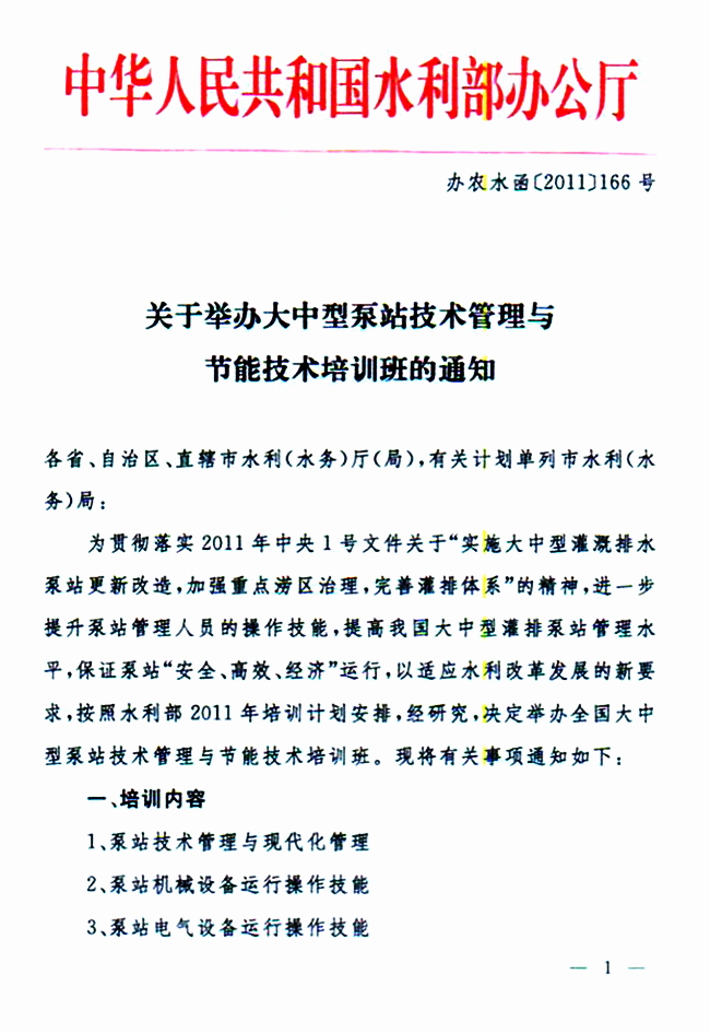關(guān)于舉辦大中型泵站技術(shù)管理與節(jié)能技術(shù)培訓班的通知