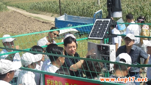 在示范區(qū)內(nèi),護欄內(nèi)的固定式無線農(nóng)業(yè)氣象綜合監(jiān)測站吸引了高處長及各參會代表的注意。陳渝陽總經(jīng)理詳細介紹了此系統(tǒng)的功能、用途,并現(xiàn)場簡單進行操作講解。各參會工作者不時詢問儀器性能、監(jiān)測時間設定、數(shù)據(jù)發(fā)送、數(shù)據(jù)查看、供電時間等細節(jié)問題,陳總經(jīng)理一一做出詳細解答。高處長在陳總經(jīng)理的指導下親自進行了操作。