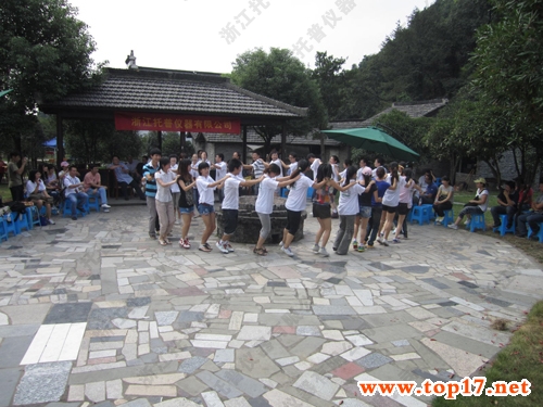 早上8:30分由三個團隊帶領(lǐng)著公司全體員工浩浩蕩蕩的向目的地----杭州大清谷進軍,約在早上9點整全體員工安全到達目的地。9.10整活動正式拉開序幕,第一項是領(lǐng)導講話,接下來是全體員工集體亮相,為了加強員工之前的相互了解和感情交流,主持人可是費了不少心思,(把全體人員按結(jié)婚與否分為兩組席地而坐)。