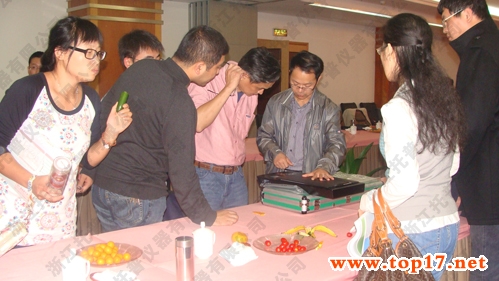 圖為:浙江托普公司朱旭華經(jīng)理向參會者演示產(chǎn)品