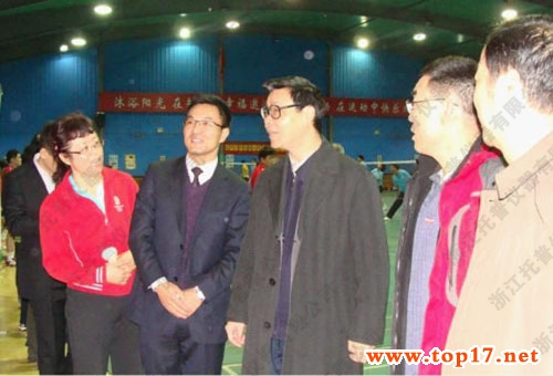 梁田庚司長蒞臨“托普儀器”杯羽毛球賽現(xiàn)場開拍