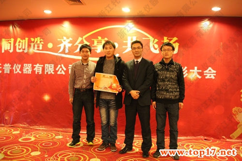 浙江托普儀器有限公司2011年年度總結(jié)表彰大會(huì)于2012年1月15日在銘泰大酒店七樓會(huì)議室隆重舉行。托普儀器全體員工共110余人齊聚一堂參加了此次會(huì)議。本次會(huì)議主要目的是共同回顧2011年托普儀器的點(diǎn)點(diǎn)滴滴,對(duì)2011年公司涌現(xiàn)出的先進(jìn)個(gè)人進(jìn)行表彰、鼓勵(lì),并對(duì)2012年的工作規(guī)劃及展望。