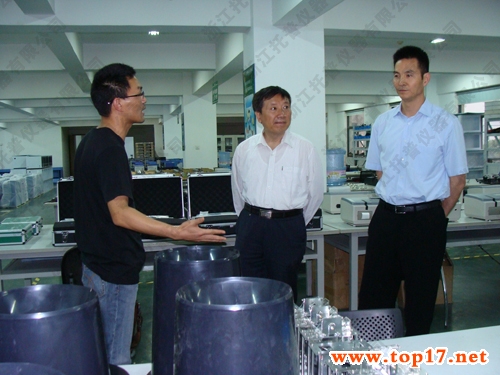張延秋局長(zhǎng)、杭大鵬書(shū)記一行在托普儀器總經(jīng)理陳渝陽(yáng)的陪同下來(lái)到托普儀器公司,先后參觀了研發(fā)中心、技術(shù)部、樣品展覽室、生產(chǎn)車(chē)間,并詳細(xì)了解了托普儀器自行研發(fā)生產(chǎn)的產(chǎn)品和生產(chǎn)流程。