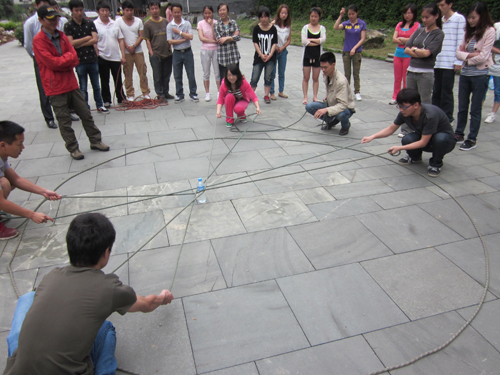 活動項目一:雷區(qū)取水,各團隊必須在規(guī)定時間內(nèi),依靠團隊的協(xié)作和智慧將在雷區(qū)內(nèi)的液態(tài)炸彈(裝滿水的桶)排除,并安全放在雷區(qū)外的彈藥庫;項目二:極速60秒,教練在一個限制區(qū)內(nèi)放置了30張未知的數(shù)字信息,各隊成員需派出一名隊員,要在兩次進入限制區(qū)的機會內(nèi)將這些數(shù)字信息有小到大的撿出并且排列好;項目三、挑戰(zhàn)五分鐘,隊員需在五分鐘內(nèi)挑戰(zhàn)完成各個項目;項目四:畢業(yè)墻,全體隊員要在不借助任何的物品與工具下,在規(guī)定時間內(nèi)翻越一堵高四米的墻。這些項目看似簡單,卻處處需要智慧。各個隊員親身體驗,參與各個項目之中,并在這種特定環(huán)境中去思考、去發(fā)現(xiàn)、去領悟,進而對自己、對同事、對整個托普大家庭重新認識、重新定位。