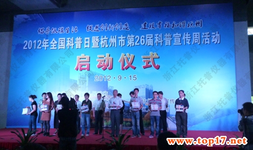 啟動(dòng)儀式上,與會(huì)領(lǐng)導(dǎo)向2010-2011年度杭州市科普工作先進(jìn)集體和先進(jìn)工作者代表頒獎(jiǎng),向2012年杭州市科普文明示范單位授牌,并向社區(qū)居民代表贈(zèng)送了科普資料。