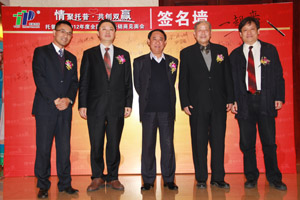 圖為:中國科學(xué)院院士、原浙江農(nóng)業(yè)大學(xué)校長、中國核農(nóng)學(xué)創(chuàng)始人陳子元院士(右二),全國農(nóng)業(yè)技術(shù)推廣中心栗鐵申副主任(中間),全國農(nóng)業(yè)技術(shù)推廣中心節(jié)水處高祥照處長(右一),杭州市拱墅區(qū)區(qū)委常委、區(qū)科技工業(yè)功能區(qū)管委會范永晨書記(左二)在簽名處合影留念