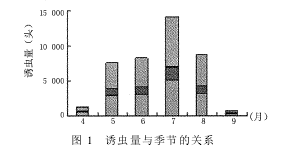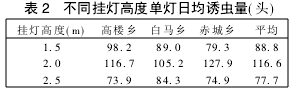 1.2.3 試驗時間 從4月底開始,到9月中旬結(jié)束,每天19時至翌日6時開燈。定人定時隔日對誘蟲情況進行統(tǒng)計記載。