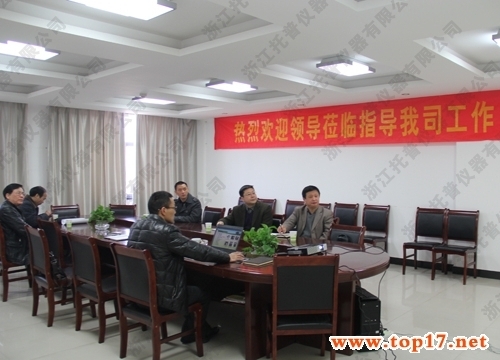 2013年3月4日上午,杭州市經(jīng)濟與信息化委員會郝志毅副主任、魏兆宏副處長、賴國軍副調(diào)研員、區(qū)發(fā)改局陳副仁副局長來到浙江托普儀器有限公司進行視察指導工作。托普儀器總經(jīng)理陳渝陽對各位領(lǐng)導的到來表示熱烈的歡迎。