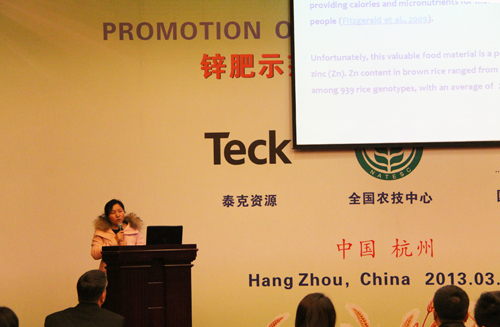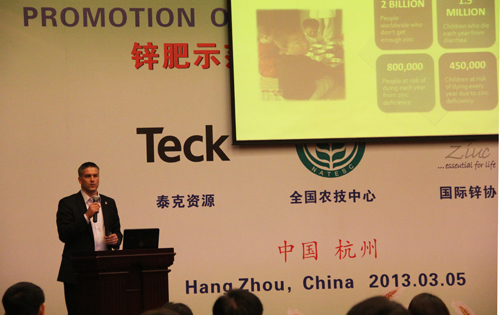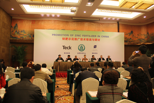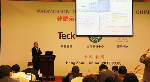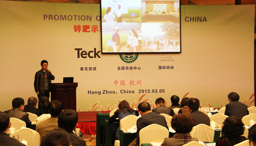 在上午的鋅肥示范推廣技術(shù)培訓(xùn)與研討會上,會議邀請了國際專家加拿大泰克資源安德魯·格林教授、國際鋅協(xié)會樊明憲教授、國內(nèi)專家浙江大學(xué)副教授馮英、天津市土壤肥料工作站鄭育鎖科長講解了鋅肥技術(shù)以及鋅肥在中國農(nóng)業(yè)生產(chǎn)中試驗(yàn)示范研究結(jié)果。據(jù)國際鋅協(xié)會報(bào)道,全球種植谷物的土地中有50%存在缺鋅的潛在危險、而我國土壤普遍缺鋅。農(nóng)作物缺鋅主要與干旱缺水、鹽堿、漬澇等農(nóng)田環(huán)境有關(guān),科學(xué)施用鋅肥是解決農(nóng)業(yè)缺鋅問題的主要途徑。近年來,隨著節(jié)水農(nóng)業(yè)的不斷發(fā)展,水肥一體化逐漸成為新的鋅肥科學(xué)施用方式�?茖W(xué)施用鋅肥,能夠提高作物產(chǎn)量,改善農(nóng)產(chǎn)品品質(zhì)。為促進(jìn)鋅肥的科學(xué)施用,廣泛宣傳鋅對作物生產(chǎn)和人體健康的作用,全國農(nóng)技推廣中心與國際鋅協(xié)會、加拿大泰克資源合作開展鋅肥示范推廣工作,并大力培養(yǎng)應(yīng)用技術(shù)人才、開展田間技術(shù)指導(dǎo)。