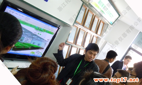 圖為:托普儀器技術(shù)人員為參觀者講解物聯(lián)網(wǎng)知識