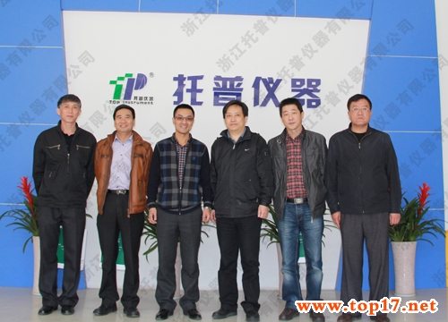 圖為:全國農(nóng)技推廣中心節(jié)水處高祥照處長、浙江省農(nóng)技推廣中心倪治華副主任、內(nèi)蒙古土肥站鄭海春站長、天津土肥站陳子學(xué)站長、遼寧土肥站研究員喬理與托普儀器陳渝陽總經(jīng)理在托普公司合影留念