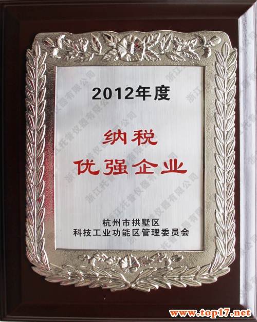 為進(jìn)一步深入落實(shí)杭州市扶優(yōu)扶強(qiáng)政策,提高企業(yè)的整體實(shí)力和經(jīng)濟(jì)水平,根據(jù)杭州市拱墅區(qū)科工區(qū)[2012]13號(hào)文件精神,杭州市拱墅區(qū)科技工業(yè)功能區(qū)管委會(huì)研究決定表彰浙江托普儀器有限公司為2012年“納稅優(yōu)強(qiáng)企業(yè)”。