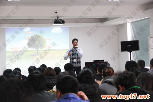 隨后,朱旭華副總經(jīng)理就公司發(fā)展歷程、企業(yè)文化、核心理念,目標戰(zhàn)略,制度流程等方面向新員工展示了托普儀器的內(nèi)部勢力和外部影響力。新員工對公司的發(fā)展有了進一步的了解,并堅定了加入托普儀器的信念。最后,朱總以陳渝陽總經(jīng)理的話——“創(chuàng)建農(nóng)業(yè)儀器產(chǎn)業(yè)園,做農(nóng)業(yè)儀器的集大成者”為口號,號召新員工盡快實現(xiàn)角色轉(zhuǎn)變,找準個人定位,融入新環(huán)境,號召新員工努力工作努力學習,在不斷擔當過程中創(chuàng)造精彩人生,打造屬于中國乃至全世界的托普儀器!