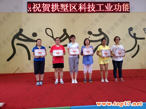 傍晚時分,比賽進入尾聲,大賽評委為一眾選手打分排名。托普儀器參賽團隊獲得團體獎第四名,公司參賽員工王秀芳獲得那字單打第五名,諸葛遠兵獲得男子單打第六名,大賽舉辦方對獲獎選手進行了嘉獎。