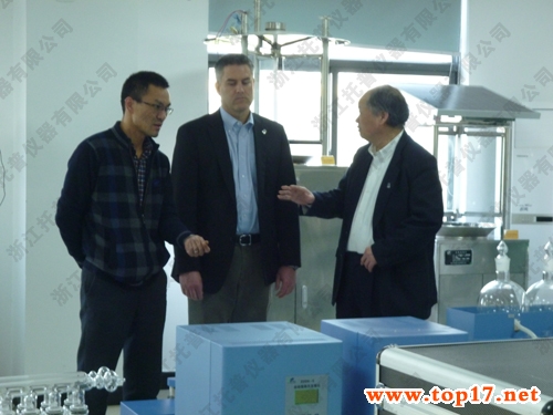 圖為:加拿大泰克資源安德魯·格林教授(中間)、國(guó)際鋅協(xié)會(huì)樊明憲教授(左一)與托普儀器陳渝陽(yáng)總經(jīng)理(右一)合影留念
