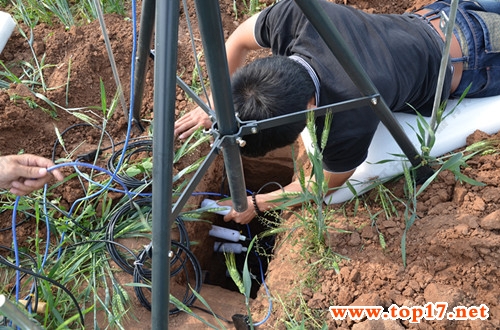 圖為:托普儀器技術(shù)人員現(xiàn)場(chǎng)安裝土壤水分溫度定點(diǎn)檢測(cè)及遠(yuǎn)程傳輸系統(tǒng)