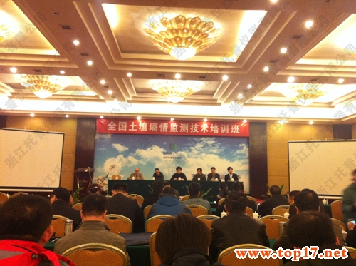 2013年3月5日至7日,全國(guó)土壤墑情監(jiān)測(cè)技術(shù)培訓(xùn)班在杭州順利舉辦,全國(guó)各省市土肥站代表120余人參加了此次會(huì)議。全國(guó)農(nóng)技推廣中心節(jié)水處高祥照處長(zhǎng)主持會(huì)議,全國(guó)農(nóng)技推廣中心杭大鵬書記、農(nóng)業(yè)部種植業(yè)管理司王金等處長(zhǎng)、浙江省農(nóng)業(yè)廳陳利江副廳長(zhǎng)、浙江省農(nóng)產(chǎn)品質(zhì)量檢測(cè)中心黃國(guó)洋主任、加拿大泰克資源安德魯·格林教授、國(guó)際鋅協(xié)會(huì)樊明憲教授出席了會(huì)議開幕式。浙江托普儀器有限公司作為墑情儀器設(shè)備研發(fā)生產(chǎn)企業(yè)全程參與了此次會(huì)議。會(huì)上,托普儀器銷售經(jīng)理陳曦先生應(yīng)邀發(fā)表了關(guān)于“自動(dòng)化土壤墑情監(jiān)測(cè)技術(shù)的研發(fā)和應(yīng)用狀況”的演講。