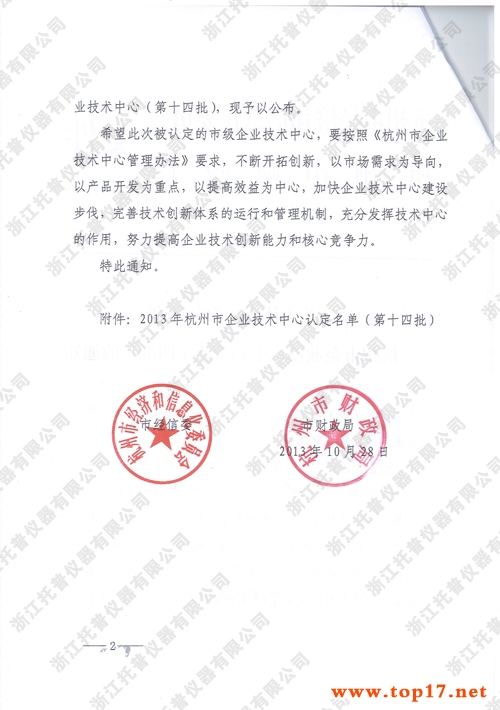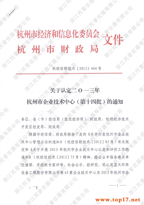 經企業(yè)申報各有關單位推薦,并組織專家評審、社會公示、經杭州市經信委和財政局研究認定浙江托普儀器有限公司等65家企業(yè)技術中心為2013年杭州市企業(yè)技術中心(第十四批)。