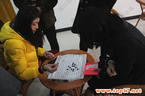 圖為:托普儀器張總和羅經(jīng)理正在進行五子棋的比拼