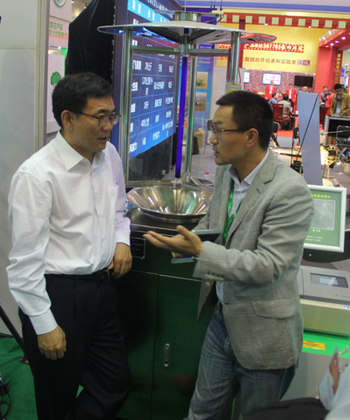 農(nóng)交會(huì)期間,張合成司長(zhǎng)一行親臨托普儀器展臺(tái)考察指導(dǎo)工作,托普儀器陳渝陽(yáng)總經(jīng)理詳細(xì)介紹了此次展出的農(nóng)業(yè)物聯(lián)網(wǎng)“四大系統(tǒng)”平臺(tái):設(shè)施農(nóng)業(yè)自動(dòng)監(jiān)測(cè)與控制平臺(tái)、農(nóng)作物病蟲(chóng)害監(jiān)測(cè)預(yù)警信息平臺(tái)、土壤墑情監(jiān)測(cè)與預(yù)警信息平臺(tái)、食品安全監(jiān)控與追溯信息系統(tǒng)。張合成司長(zhǎng)表示,信息化技術(shù)是現(xiàn)代農(nóng)業(yè)的重要發(fā)展方向,應(yīng)加強(qiáng)研究力度,提高整體應(yīng)用水平。